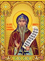 Христову мученику тезоименит был еси, преподобне, многи подвиги и труды претерпел еси Христа ради, Егоже ради вериги носил еси, блаженне: Того ныне о нас моли, Никите преподобне, душевныя наша и телесныя страсти уврачевати, иже верою и любовию почитающих присно память твою.